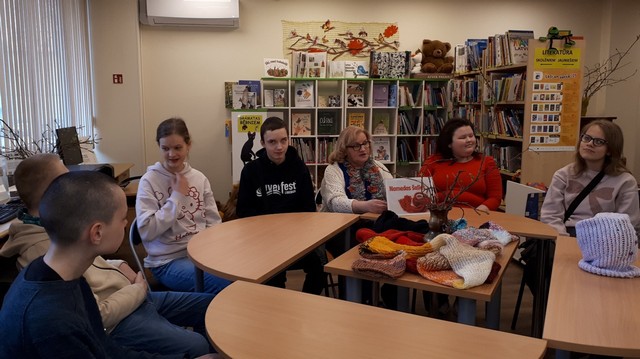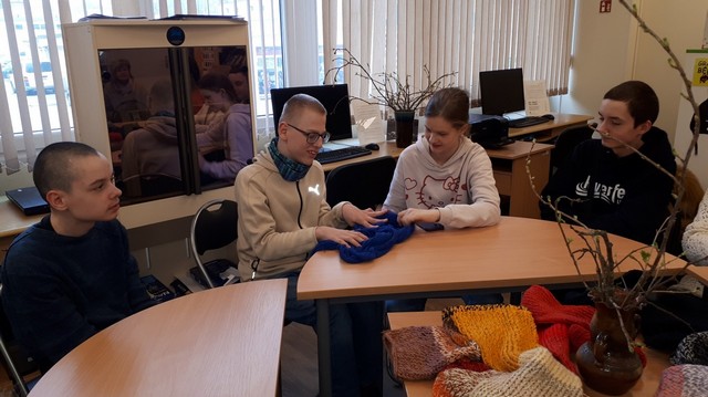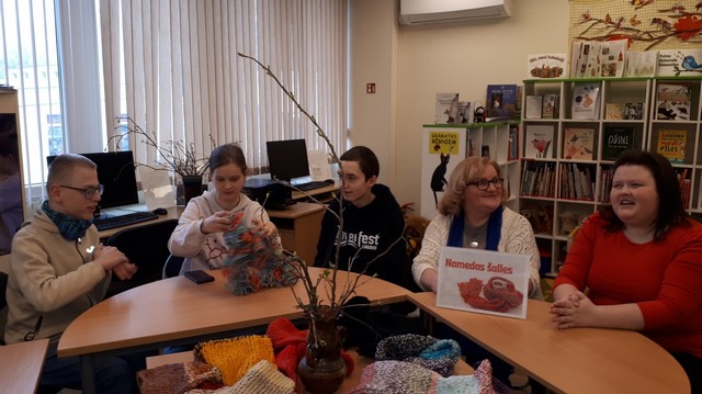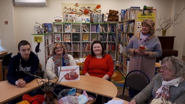 2026. gada 19. marta pēcpusdienā Latvijas Neredzīgo bibliotēkas lasītavā Juglas ielā 14B sapulcējās 5. – 10. klašu audzēkņi kopā ar skolotājām Laimdotu Žirbu, Daci Izotovu un Kristīni Saliņu, lai mūsu skolas skolotājas Daces Izotovas vadībā iepazītos ar tāda populāra, sava veida renesansi mūsdienās guvušā rokdarbu veida – adīšanas vēsturi, vairāk pievēršoties tieši šaļļu darināšanas vēsturei. Skolotāja Dace, tinot sava atmiņu kamoliņa pavedienu, dalījās ar mūsu auditoriju par savu aizraušanos ar adījumiem un citiem rokdarbu veidiem. Skolotāja Dace ar gandarījumu mums stāstīja par to, ka viņai mājās ir pašai savu darināto – adīto, tapoto, ar akrilu apgleznoto – šaļļu kolekcija, no kuras, atkarībā no tās dienas noskaņojuma, tiek izvēlēts kāds pašas darināts, neatkārtojums aksesuārs pie ikdienas apģērba, un, kas zīmīgi, tāds ar rūpību, pacietību un mīlestību radīts pašas darinājums ne tikai spēj mīlīgi sildīt, bet pat iespēj uzlabot omu savam valkātājam mūsdienu stresainajā pasaulē. Kas zina, ko tik visu vēl var iespēt labi paveikts darbs kā sava darītāja meistarības apliecinājums! Pasākuma turpinājumā, pieskaroties dažādiem posmiem cilvēces attīstībā, noskaidrojām, no kurienes radies šis praktiskais, ikdienā tik bieži lietojamais sieviešu un vīriešu modes aksesuārs – šalle.